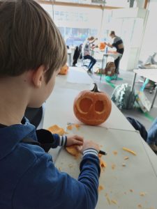 Am Mittwoch, 29.10.2025 haben interessierte Schüler und Schülerin der fünften Klasse im Rahmen von BNE (Bildung für nachhaltige Entwicklung) und Halloween tolle Kürbisse geschnitzt und dabei gleichzeitig ihr Wissen erweitert und etwas Leckeres für die Schulfamilie gekocht.