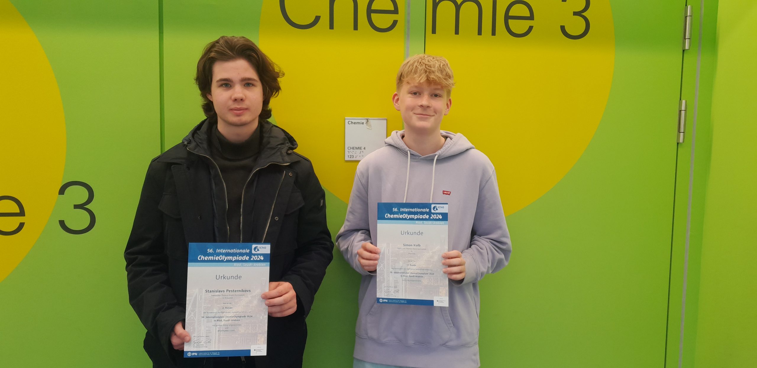 Leopoldina (10E), Eduardo (11D), Stanislavs (Q12) und Simon (11D) haben mit großem Engagement an der diesjährigen Internationalen Chemieolympiade teilgenommen. Stanislavs und Simon haben es in die zweite Runde geschafft. Stanislav erreichte darin einen beeindruckenden 23. Platz unter mehr als 300 Teilnehmern. Die Olympiade bietet eine Plattform für junge Chemiebegeisterte, um ihr Wissen und ihre Fähigkeiten zu demonstrieren und sich mit Gleichgesinnten aus der ganzen Welt zu messen. Wir gratulieren den Schüler*Innen zu ihrem Erfolg!