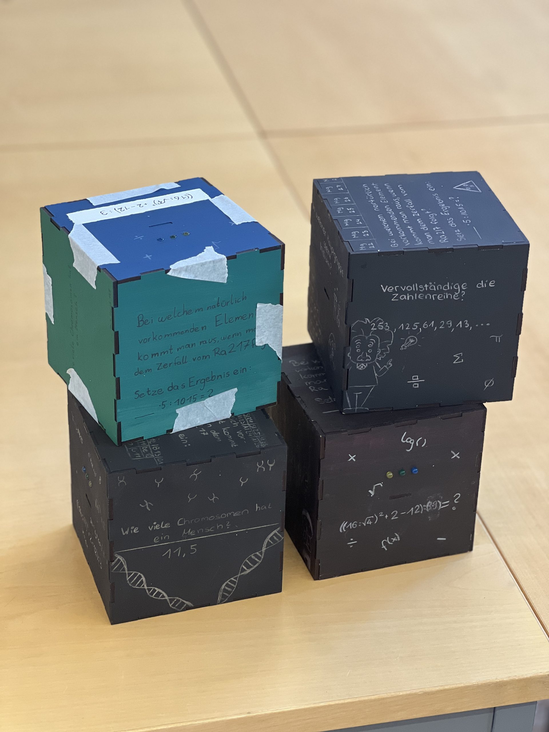 Der Freitag diente der Fertigstellung der Würfel und einem gemeinsamen Abschluss mit Pizza. Wir Lehrkräfte sind stark beeindruckt, welche tolle Rätsel sich die Teams ausgedacht haben und wie super, die sie Würfel gebaut haben.