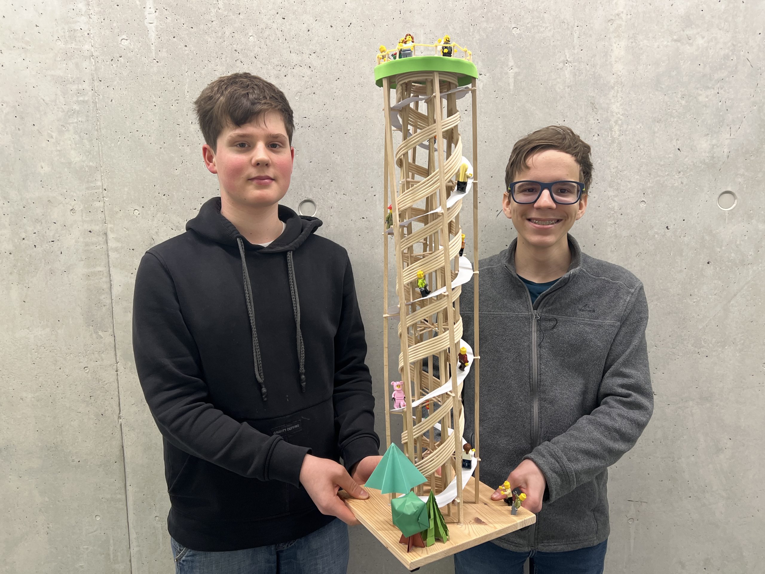Das vierte Jahr in Folge nahmen wieder 18 Schülerinnen und Schüler in 10 Teams am Wettbewerb Junior.ING – Schülerwettbewerb teil, welcher von der Bayerischen Ingenieurkammer Bau ausgelobt wurde. Aufgabe war es, einen Aussichtsturm zu bauen. Im Rahmen des Wahlkurses Junior.ING wurde von September bis Februar recherchiert, geplant, getüfftelt, ausprobiert, verworfen und neugebaut bis schließlich ganz stolz kreative Türme eingereicht werden konnten.