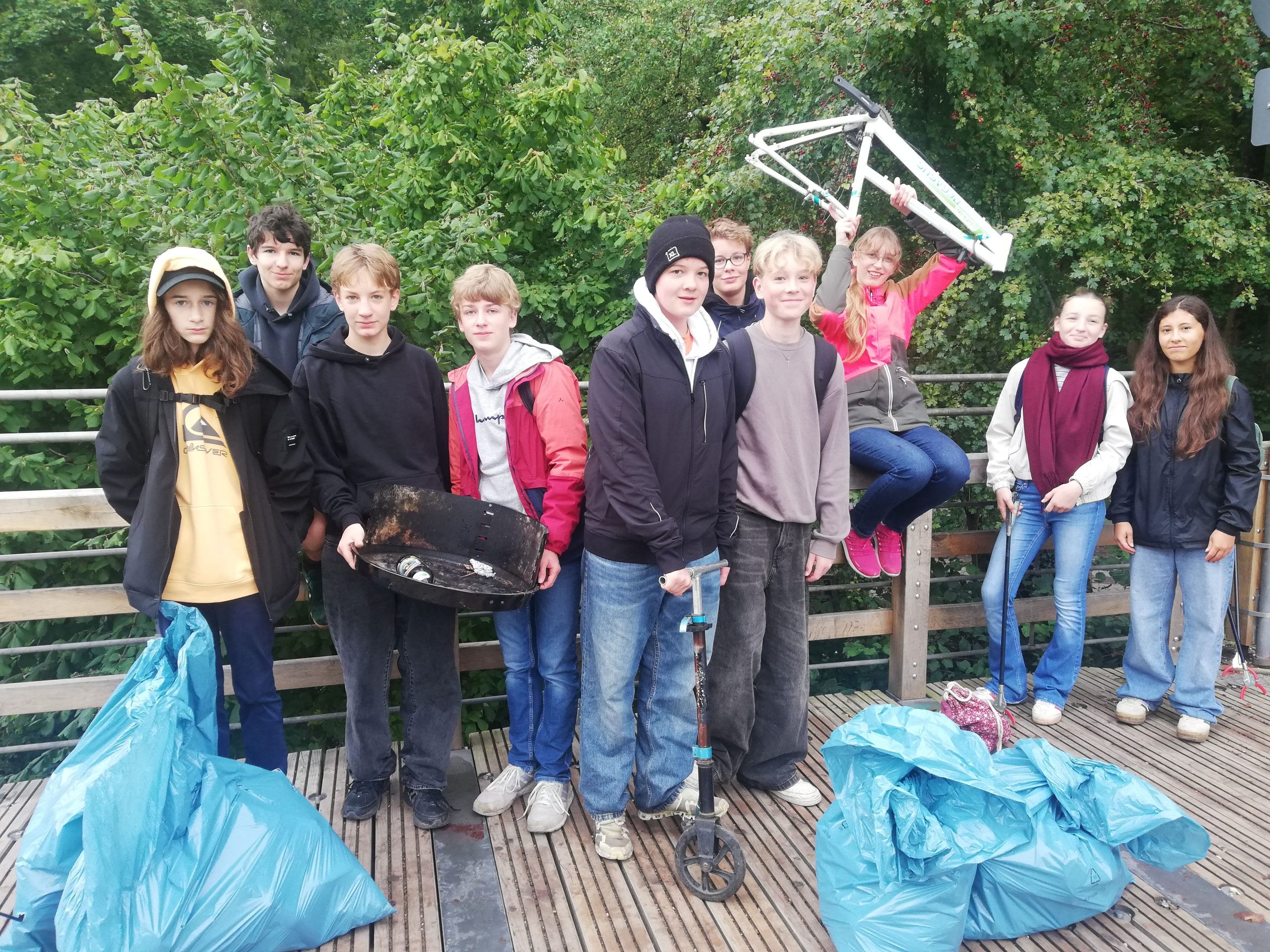 Die Aktion zeigte eindrucksvoll, wie viel Abfall leider in der Natur landet – und wie wichtig es ist, aktiv dagegen vorzugehen. Einige Schüler gingen dabei buchstäblich „bis an die Grenzen“: So holte sich Johannes beim Müllsammeln sogar einen nassen Socken, da er unbedingt den hartnäckigen Müll mitten im Fluss einsammeln wollte.