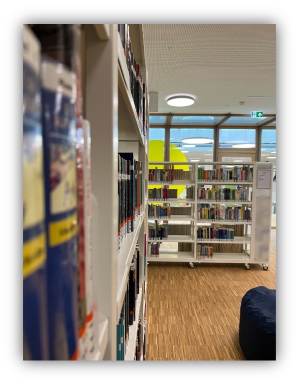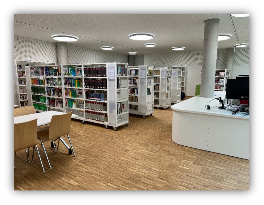 Unsere Schulbibliothek befindet sich im 1. Stock des Aula-Bereiches in Raum 111 und ist ein beliebter Treffpunkt für alle Jahrgangsstufen und kann während den Pausen und Freistunden besucht werden.