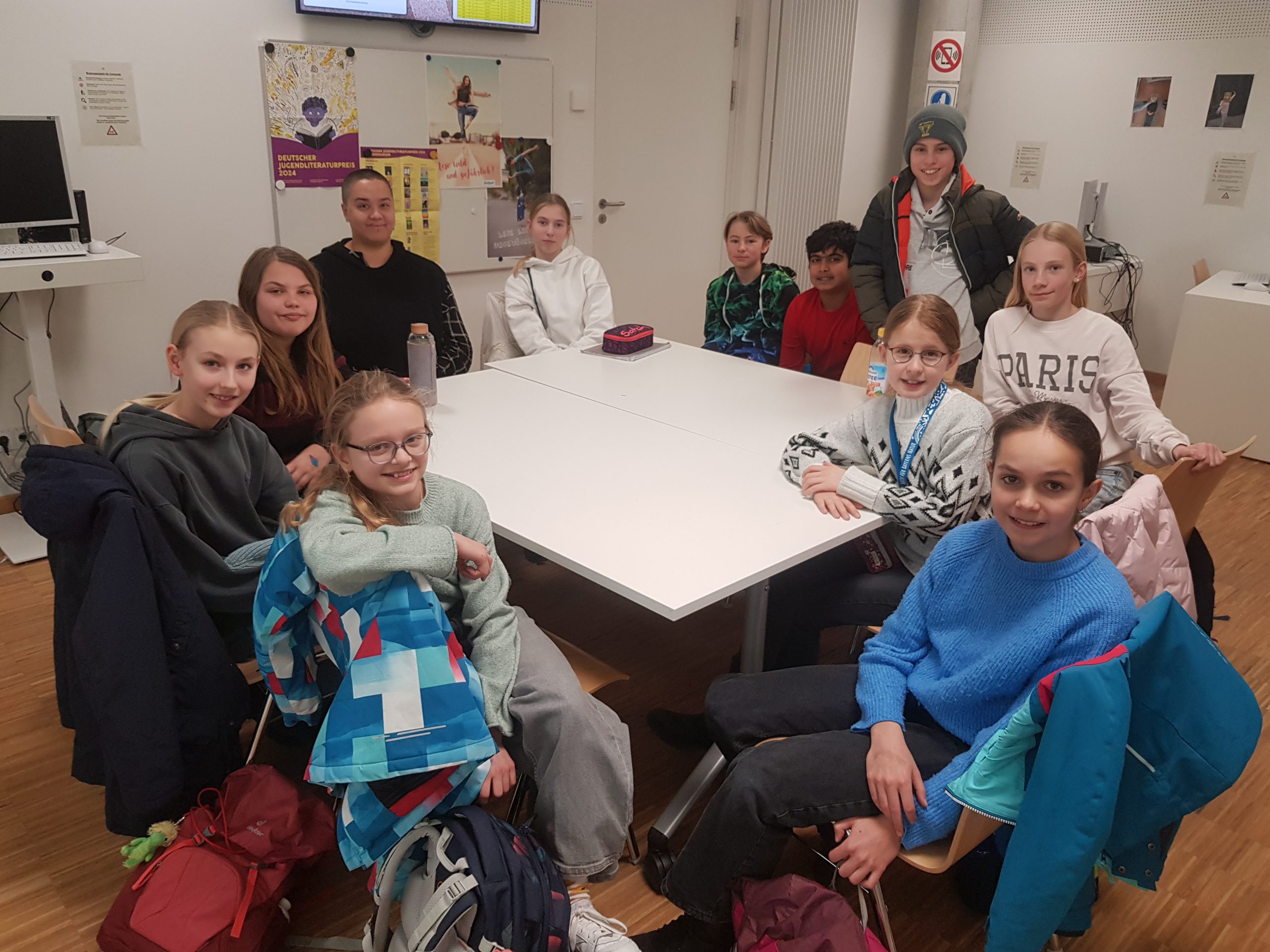 Schreiben in der Schule muss nicht immer an Aufsätze im Deutschunterricht und die Notengebung gekoppelt sein, sondern kann auch wesentlich motivierender und freier erfolgen; z.B. über einen Workshop zum kreativen Schreiben, wie er am 27.02.2025 für interessierte Schüler/-innen der Jahrgangsstufen 6 bis 8 angeboten wurde. Den ganzen Vormittag entwickelte die Schreibtutorin Tabea Hawkins, die auch am Schreibzentrum der LMU Kurse anbietet, mit den Schüler/-innen eigene Geschichten, die sich wirklich hören lassen konnten. Dabei lehnten sie sich an das verbreitete Muster der Heldenreise an. Dieser Vormittag machte den Teilnehmenden erkennbar Spaß und regte sie zu weiterer schriftstellerischer Tätigkeit außerhalb des Unterrichts an.